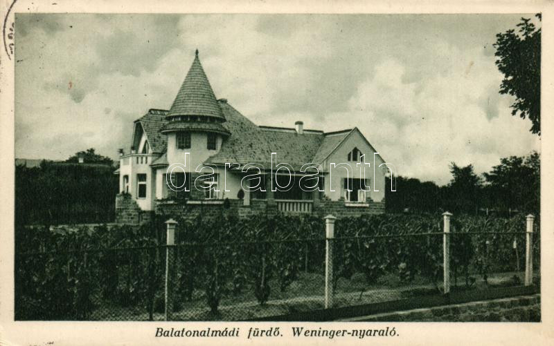 Balatonalmádi fürdő, Weninger nyaraló (EK) https://www.darabanth.com/hu/252-Gyorsarveres/252.0/Kepeslapok/Magyarorszag~200006/Balatonalmadi-furdo-Weninger-nyaralo-EK~II1219352