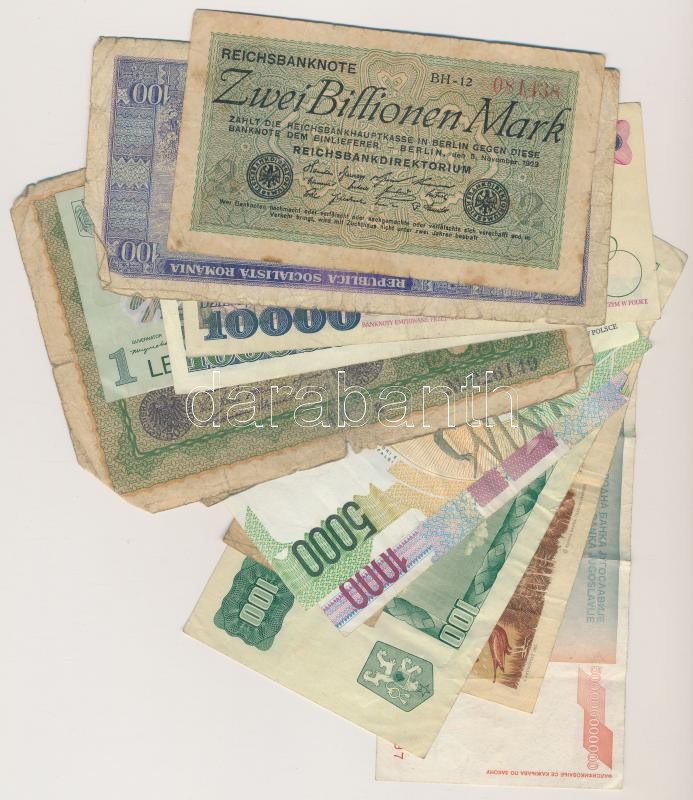 30db-os vegyes külföldbi bankjegy tétel, közte Csehszlovákia, Lengyelország, Olaszország, Románia T:vegyes