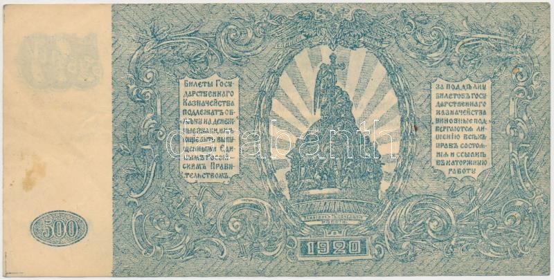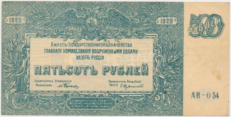 Orosz Polgárháború / Dél-Oroszország / Wrangel Hadserege 1920. 500R T:III szép papír