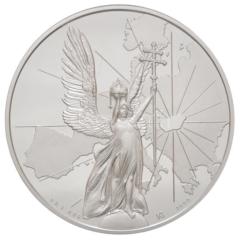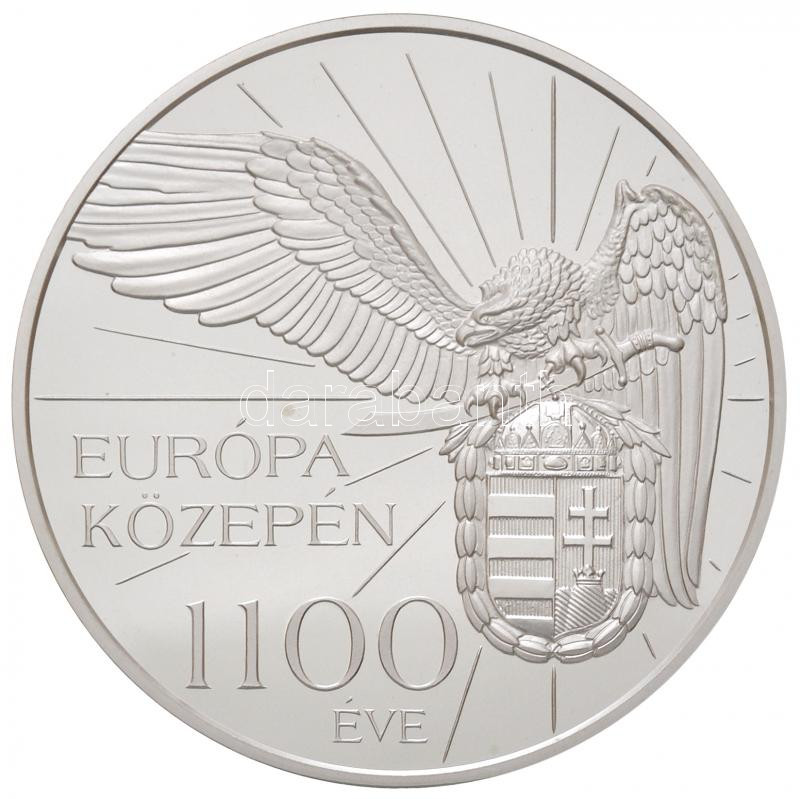 Leírás: Kósa István (1953-) 2000. "Európa Közepén 1100 éve" Ag emlékérem eredeti dísztokban tanúsítvánnyal (124.416g/0.999/65mm) T:PP apró karc, kis fo.