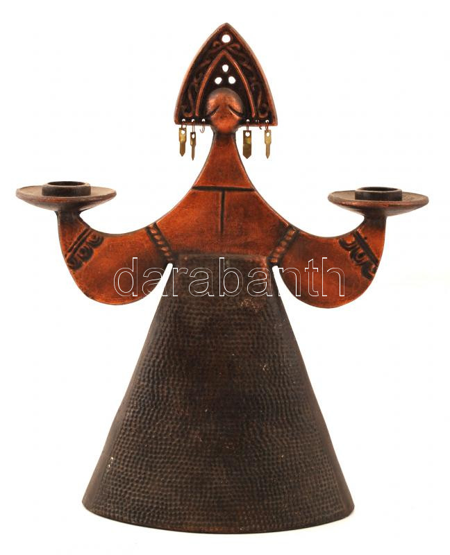 Leírás: Figurális gyertyatartó, hiányos, réz, jelzés nélkül m:29 cm