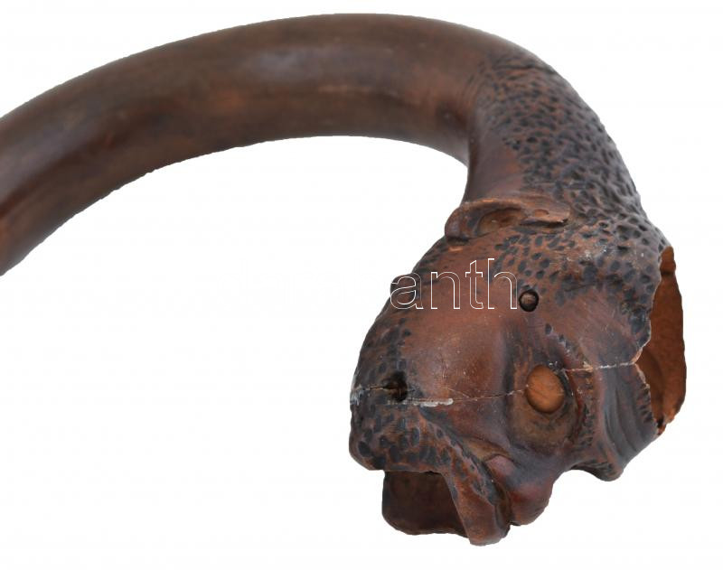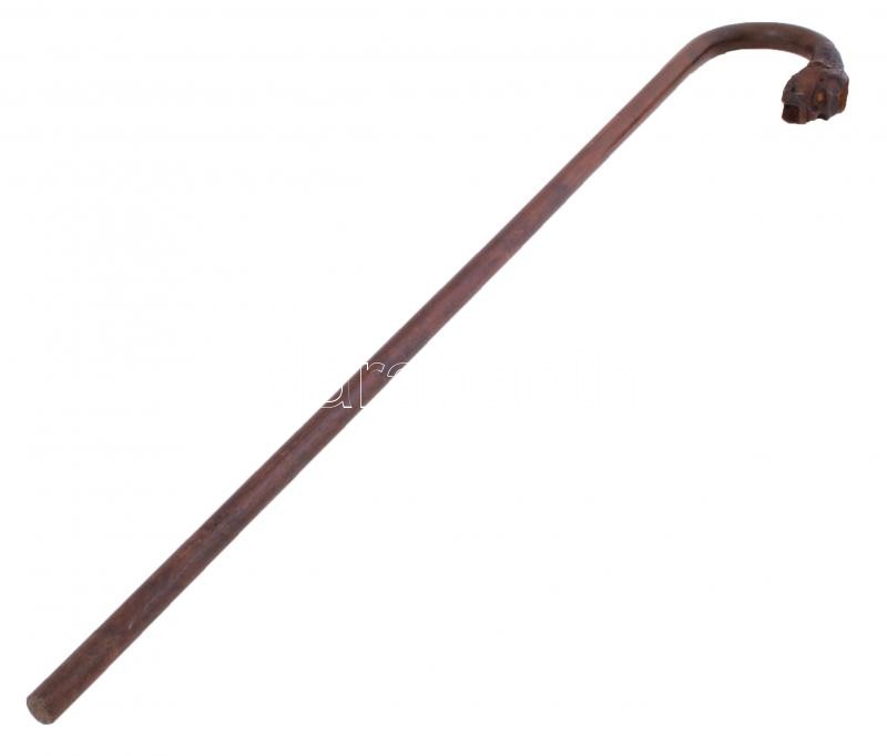 Hiányos majomfejes sétapálca, fa, h:77 cm