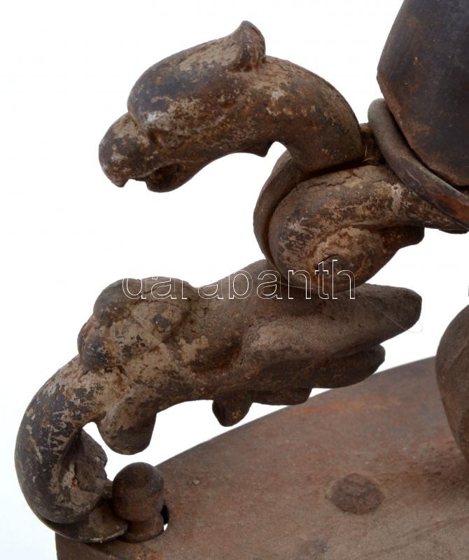 Leírás: XIX. sz.: Oroszlánfej díszítésű öntöttvas szenes vasaló sérüléssel / Iron. 22x24 cm