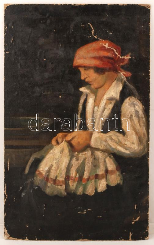 Jelzés nélkül: Varrónő. Olaj, karton, sérült, 70×43 cm https://www.darabanth.com/hu/253-Gyorsarveres/253.0/Festmeny-mutargy-papirregiseg-egyeb/Festmenyek-es-grafikak~600349/Jelzes-nelkul-Varrono-Olaj-karton-serult-70C39743-cm~II1228605