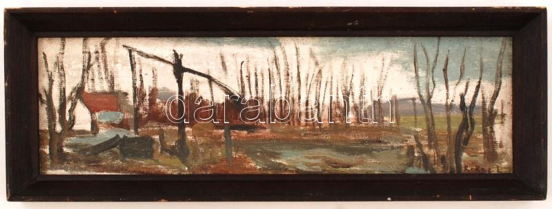 Leírás: Kokas jelzéssel: Tanya. Olaj, karton-vászon, keretben, 9×34 cm