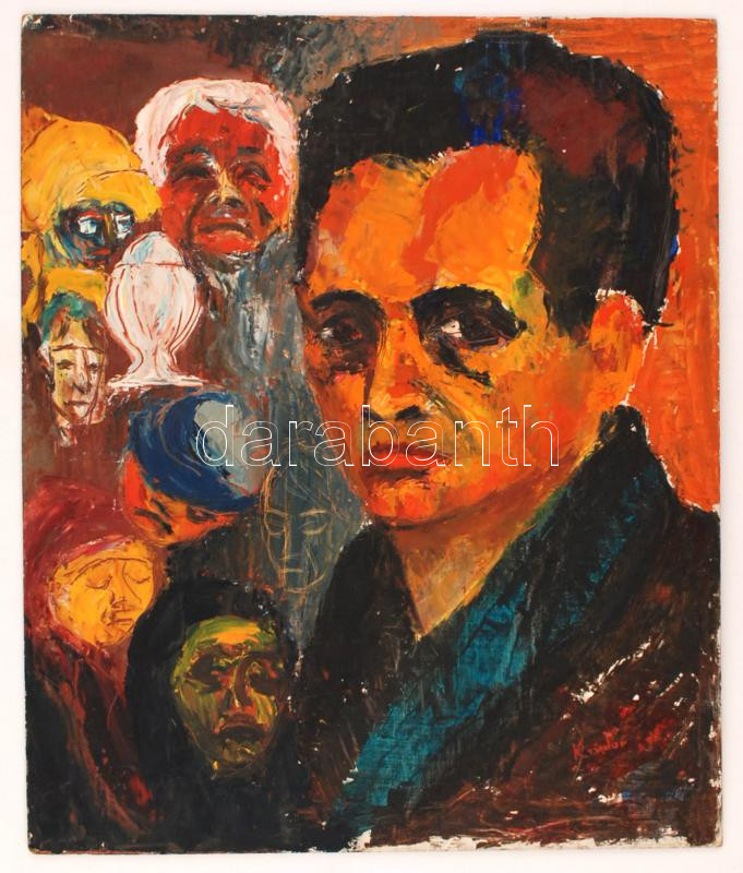 Kondor jelzéssel: Fejek . Olaj, karton, 60×50 cm https://www.darabanth.com/hu/253-Gyorsarveres/253.0/Festmeny-mutargy-papirregiseg-egyeb/Festmenyek-es-grafikak~600349/Kondor-jelzessel-Fejek-Olaj-karton-60C39750-cm~II1227610