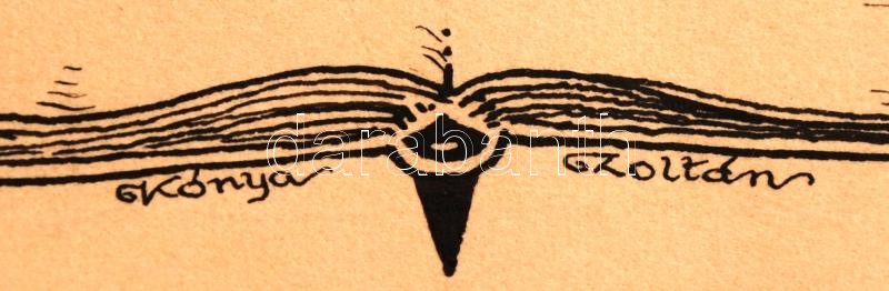 Leírás: Kónya Zoltán (1891-?): Ex libris terv, vegyes technika, papír, jelzett, 14×7,5 cm
