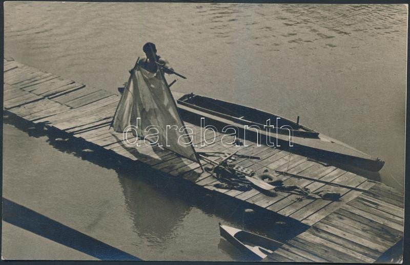 Leírás: 1936 Jermy László: Folyami vitorlás, jelzés nélküli vintage fotó a szerző hagyatékából, 11x17 cm