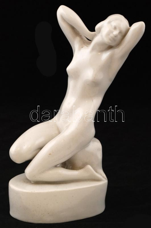 Leírás: Zsolnay akt, fehér mázas, jelzett, apró hajszálrepedéssel, m:23 cm