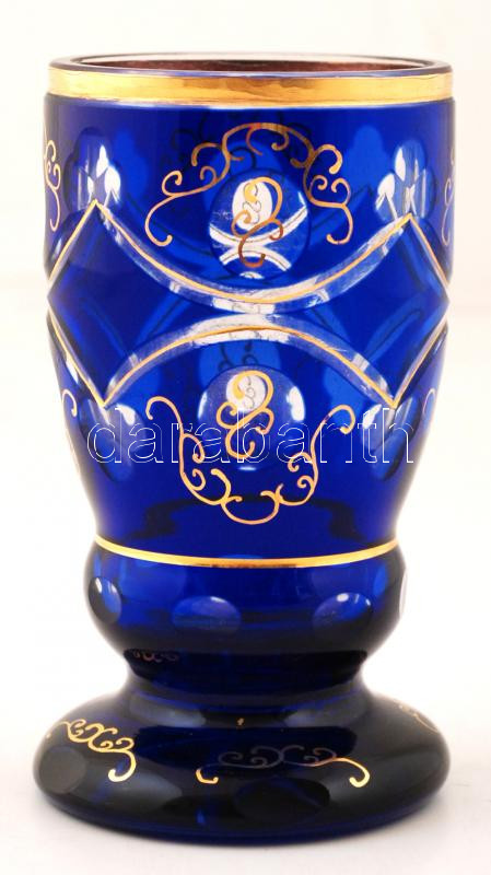 Leírás: Kétrétegű, kézzel festett, csiszolt üveg kehely, hibátlan, jelzés nélkül, 15cm