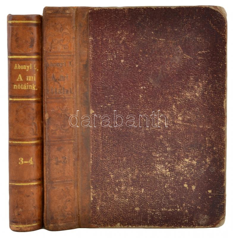 Leírás: Abonyi Lajos: A mi nótáink. 1-4. köt. Pest, 1864, Kisfaludy Társaság. Két kötetbe kötve, kopott félbőr kötésben, foltos, részben javított lapokkal.