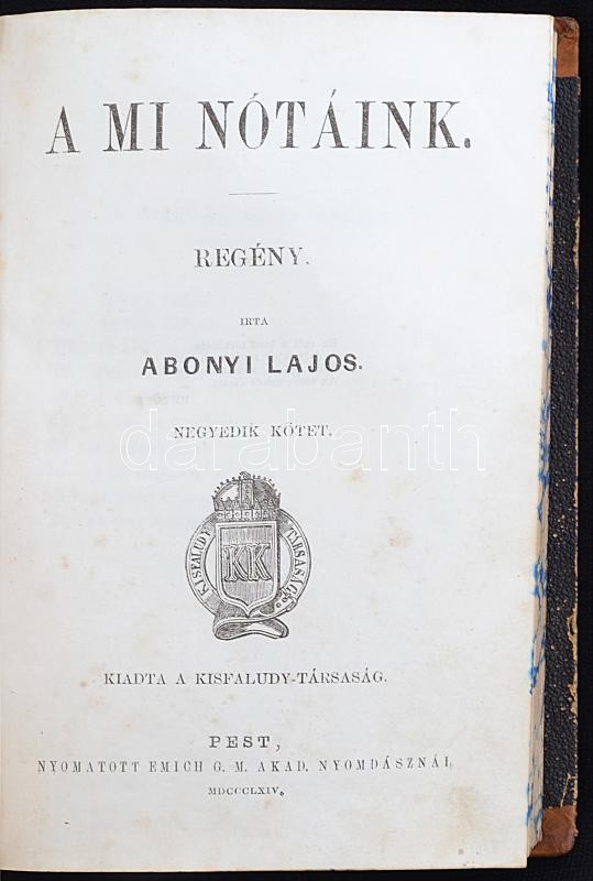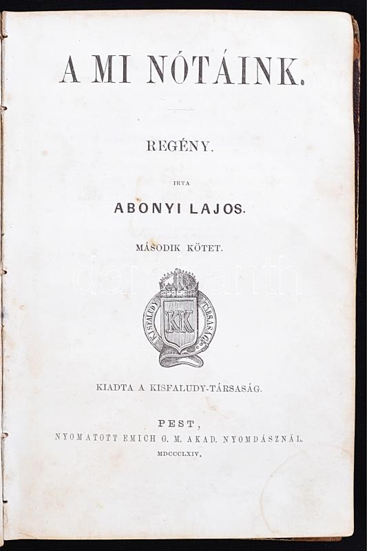 Abonyi Lajos: A mi nótáink. 1-4. köt. Pest, 1864, Kisfaludy Társaság. ... https://www.darabanth.com/hu/253-Gyorsarveres/253.0/Konyvek-terkepek-nyomtatvanyok/Konyvek-Egyeb-ritkasagok~400032/Abonyi-Lajos-A-mi-notaink-1-4-kot-Pest-1864-Kisfaludy-Tarsasag-Ket-kotetbe-kotve-kop~II1224906