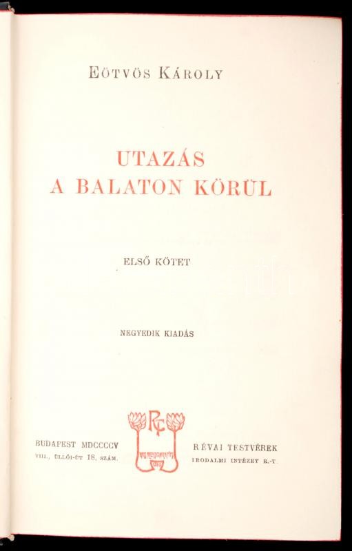Eötvös Károly:A balatoni utazás vége. Bp., 1905, Révai Testvérek. Kiad... https://www.darabanth.com/hu/253-Gyorsarveres/253.0/Konyvek-terkepek-nyomtatvanyok/Konyvek-Utazas-varosok~400004/Eotvos-KarolyA-balatoni-utazas-vege-Bp-1905-Revai-Testverek-Kiadoi-szecesszios-eges~II1225071