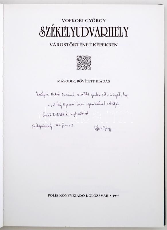 Leírás: Vofkori György: Székelyudvarhely - Várostörténet képekben. Kolozsvár, 1998, Polis. Kiadói modern keménykötésben. Második, bővített kiadás. Dedikált példány!