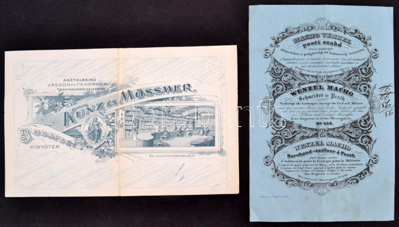 1840, 1905 Bp. V. Wenczel Manó szabó és Kunz és Mössmer cég grafikus, ... https://www.darabanth.com/hu/253-Gyorsarveres/253.0/Konyvek-terkepek-nyomtatvanyok/Nyomtatvanyok~400042/1840-1905-Bp-V-Wenczel-Mano-szabo-es-Kunz-es-Mossmer-ceg-grafikus-reklamos-szamlaja~II1230461