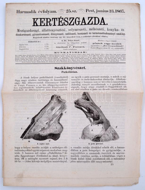 1867 Kertészgazda, mezőgazdasági ... szaklap. Szerk.: Girókuti P. Fere... https://www.darabanth.com/hu/253-Gyorsarveres/253.0/Konyvek-terkepek-nyomtatvanyok/Nyomtatvanyok~400042/1867-Kerteszgazda-mezogazdasagi-szaklap-Szerk-Girokuti-P-Ferenc-3-evf-25-sz-Pest-~II1230493