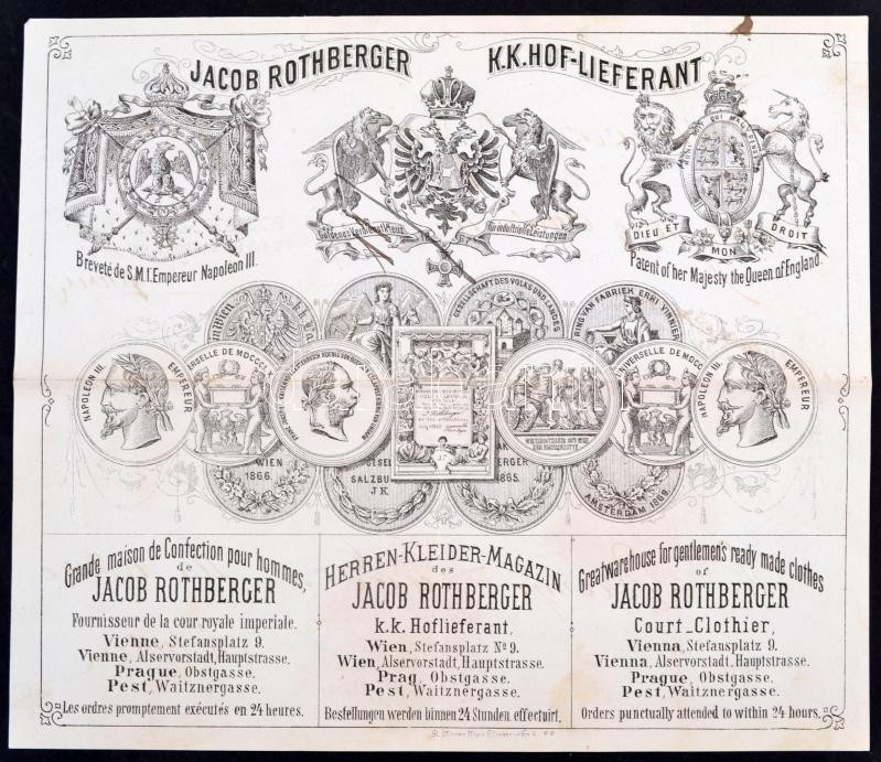 Leírás: 1879 Bp., V. Rothberger Jakab ruhaüzlet grafikus számla