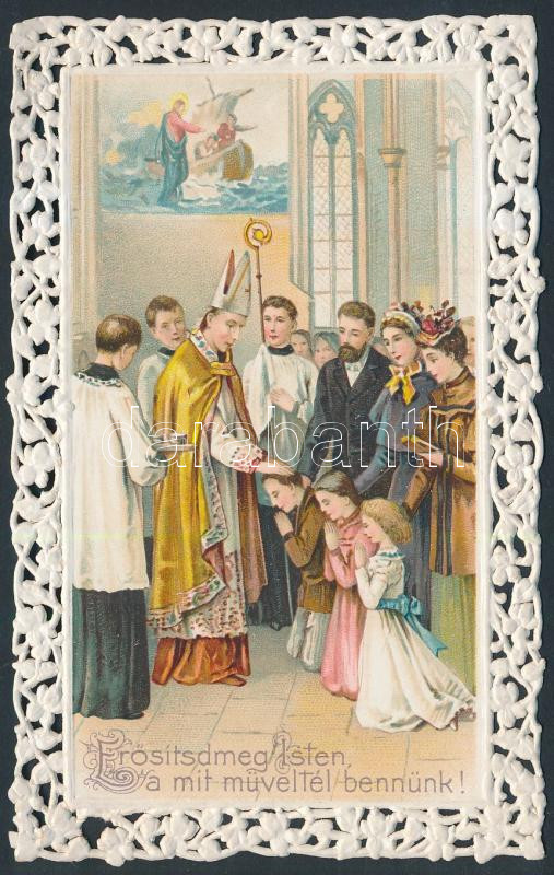 Leírás: 1918 Csipkeszélű bérmálási emlék, hibátlan, 11x7cm