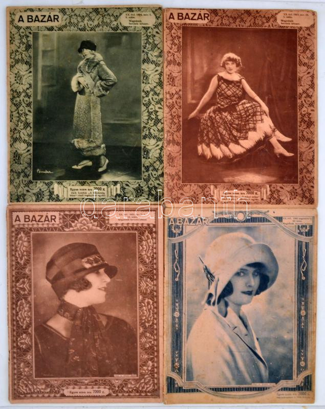 Leírás: 1924-25 A bazár, 4 száma, cikkek és képek divatról és más érdekes témáról,pp.:31, 29x22cm