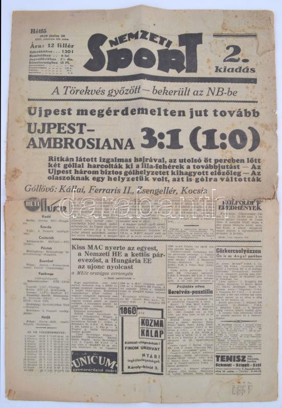 Leírás: 1939 a Nemzeti Sport 31. évf. 125. lapszáma érdekes aktuális hírekkel