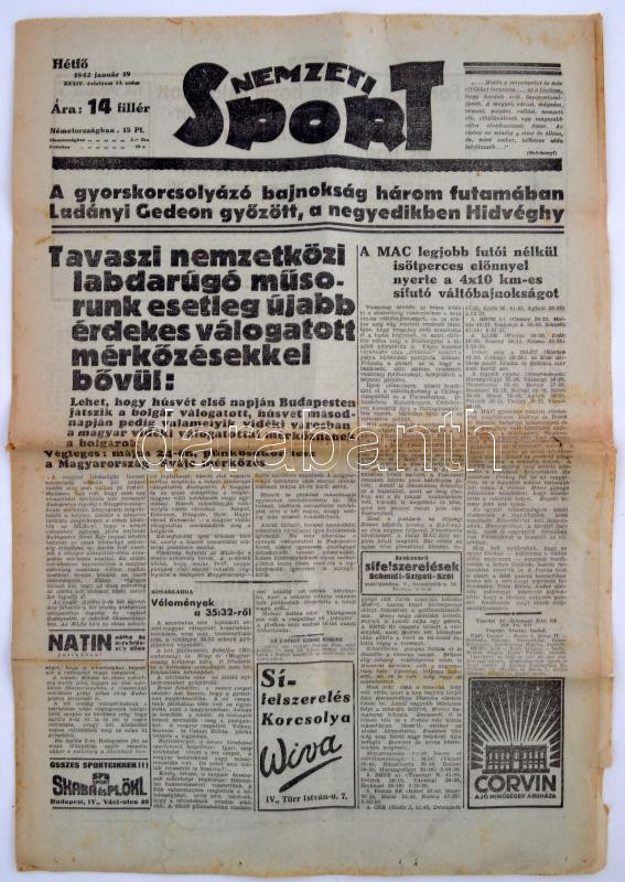 Leírás: 1942 a Nemzeti Sport 34. évf. 13. lapszáma érdekes aktuális hírekkel