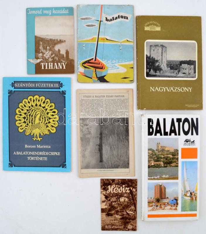Leírás: 1953 Tihany IBUSZ útikalauz. Budapest, Közlekedési Kiadó. Tűzött kötés. Pp.:48, 14x10cm + 6db egyéb balatoni nyomtatvány