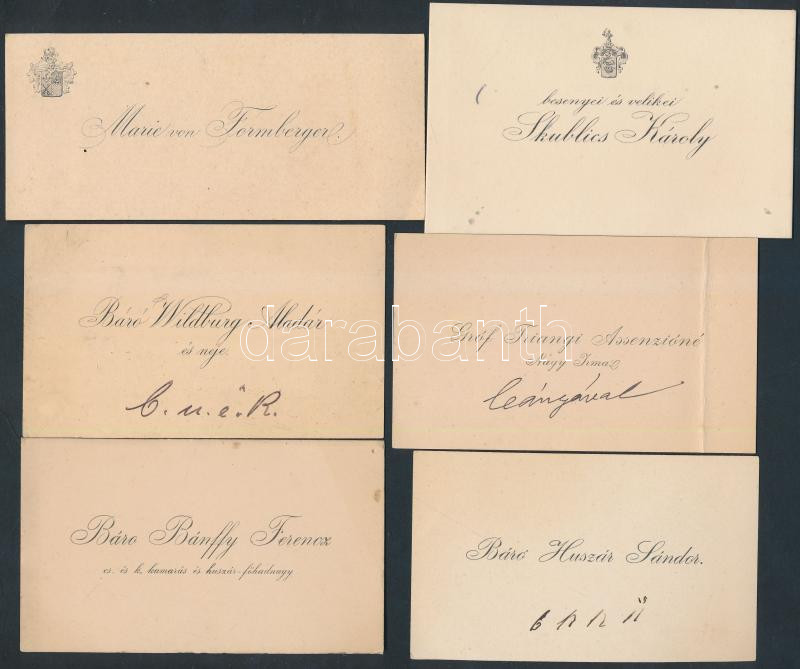 cca 1860-1930 Névjegy-kártyagyűjtemény, (gróf Kornis Viktor, gróf Bethlen Béla, báró Bánffy Ferenc, Inkey-Pallin Edvárd, Victor de Ramberg, stb.), 26 db