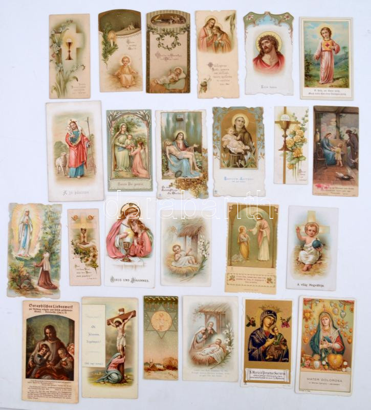 Leírás: cca 1900-30 Vegyes szentkép tétel benne litho is, különböző méretben és minőségben, 24db, cca 11x6cm
