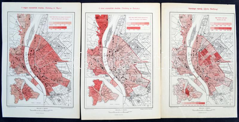 Leírás: cca 1901 Budapesti statisztikai térképek, 5db,különböző méretben és minőségben, 27x18cm, 26x35cm