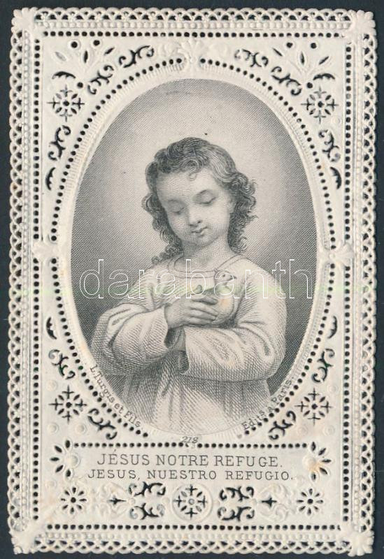 Leírás: cca 1920-30 Csipkeszélű, áttört szentkép,hibátlan, 7x5cm