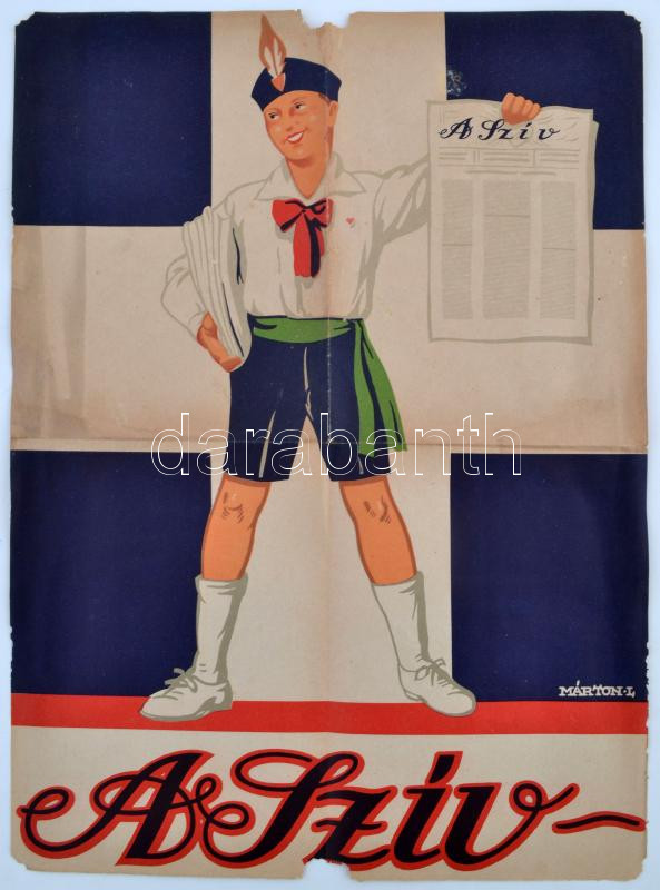 cca 1930-40 Szív újságot reklámozó plakát Márton Lajos, szélén kis hib... https://www.darabanth.com/hu/253-Gyorsarveres/253.0/Konyvek-terkepek-nyomtatvanyok/Nyomtatvanyok~400042/cca-1930-40-Sziv-ujsagot-reklamozo-plakat-Marton-Lajos-szelen-kis-hibakkal-46x33cm~II1226945