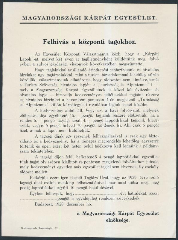 cca 1930 A Magyarországi Kárpát Egyesület 3 db nyomtatványa https://www.darabanth.com/hu/253-Gyorsarveres/253.0/Konyvek-terkepek-nyomtatvanyok/Nyomtatvanyok~400042/cca-1930-A-Magyarorszagi-Karpat-Egyesulet-3-db-nyomtatvanya~II1228777