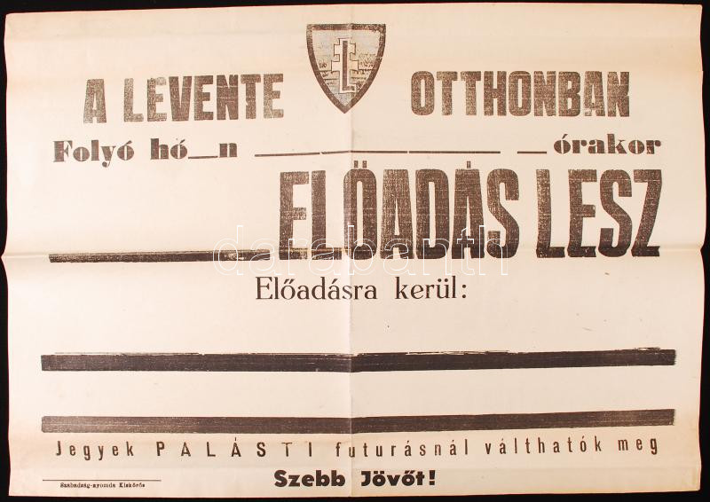 cca 1940 Levente plakát, 29×41 cm https://www.darabanth.com/hu/253-Gyorsarveres/253.0/Konyvek-terkepek-nyomtatvanyok/Nyomtatvanyok~400042/cca-1940-Levente-plakat-29C39741-cm~II896976