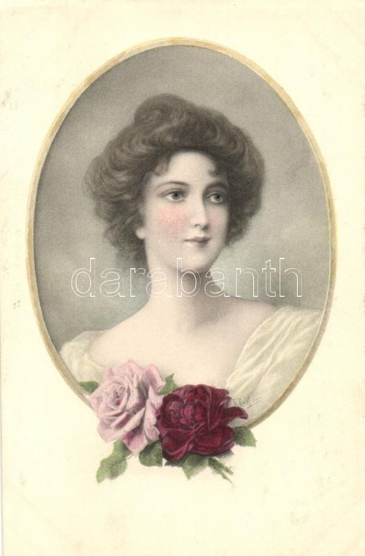 Leírás: Lady in frame, M. Munk Vienne Nr. 619.