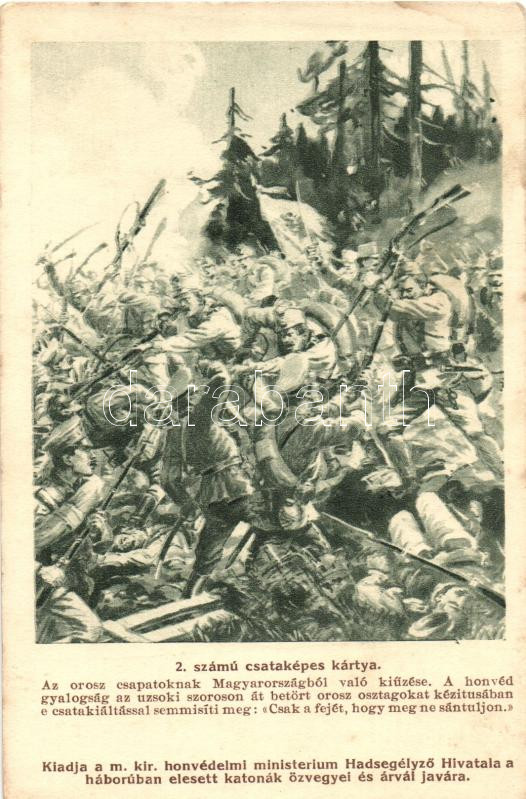 Leírás: 2. számú csataképes kártya, az orosz csapatok kiűzése Magyarországról / Military WWI Hungarian soldiers, fighting with Russian soldiers