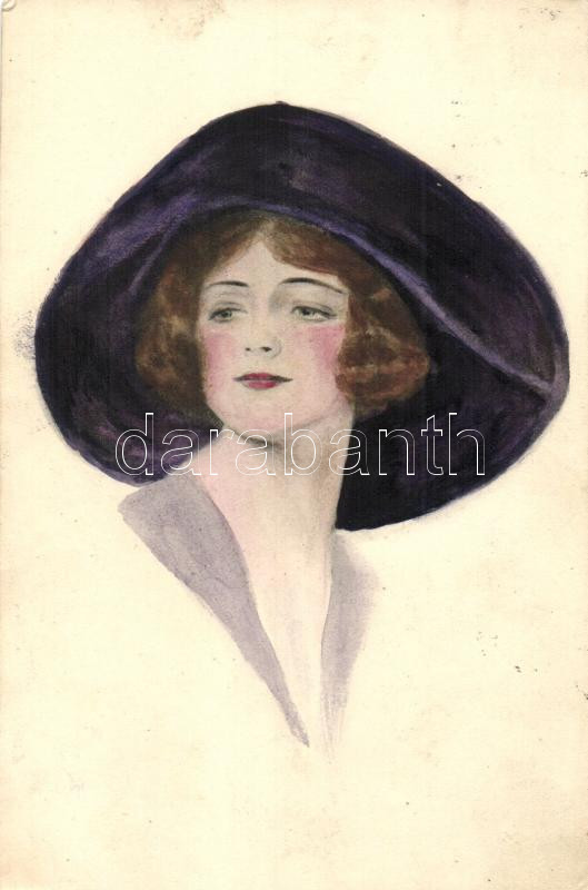 Italian art postcard, Lady in purple hat https://www.darabanth.com/hu/253-Gyorsarveres/253.0/Motivum-kepeslapok/Muvesz~52/Italian-art-postcard-Lady-in-purple-hat~II1230970