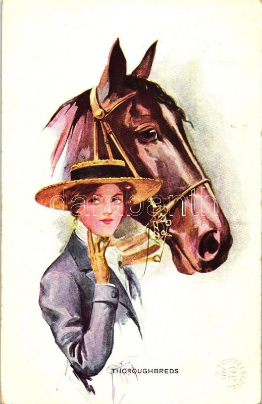'Thoroughbreds', Lady with horse, RHB series No. 686/3, s: C... https://www.darabanth.com/hu/253-Gyorsarveres/253.0/Motivum-kepeslapok/Muvesz~52/Thoroughbreds-Lady-with-horse-RHB-series-No-6863-s-Court-Barber-vagott-cut~II1230508