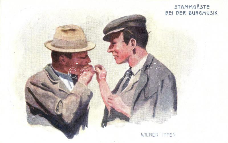 Wiener Typen - Stammgaste bei der Burgmusik, B.K.W.I. 917-12. https://www.darabanth.com/hu/253-Gyorsarveres/253.0/Motivum-kepeslapok/Muvesz~52/Wiener-Typen--Stammgaste-bei-der-Burgmusik-BKWI-917-12~II1227212