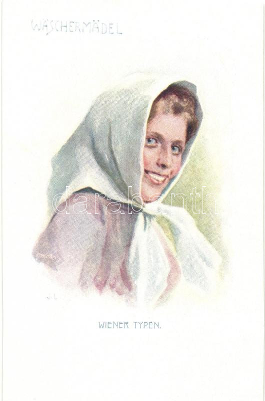 Wiener Typen - Wäschermädel, B.K.W.I. 917-8. https://www.darabanth.com/hu/253-Gyorsarveres/253.0/Motivum-kepeslapok/Muvesz~52/Wiener-Typen--Waschermadel-BKWI-917-8~II1227220