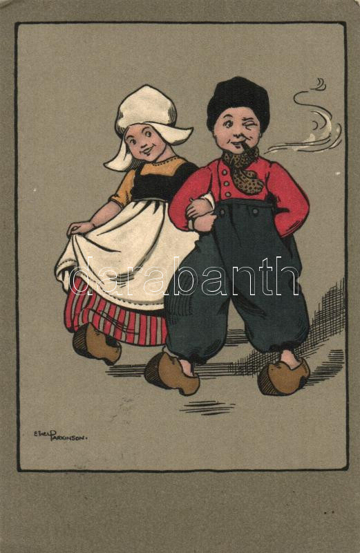 Leírás: Young Dutch couple, folklore, BD No. 380, litho, s: Ethel Parkinson