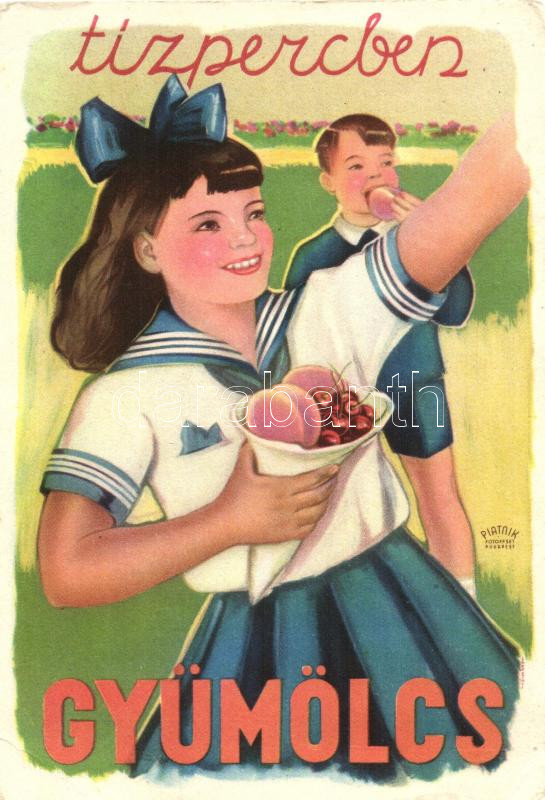Tízpercben gyümölcs. C-vitamin táblázat a hátoldalon; M. kir. Földművelésügyi Minisztérium kiadása / Hungarian fruit propaganda. C-vitamine chart on the backside (EK)