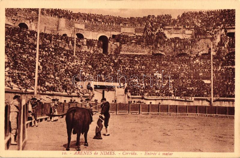 Nimes, Arena, Corrida, Entree a matar / bull fight https://www.darabanth.com/hu/253-Gyorsarveres/253.0/Motivum-kepeslapok/Sport~22/Nimes-Arena-Corrida-Entree-a-matar-bull-fight~II1230850