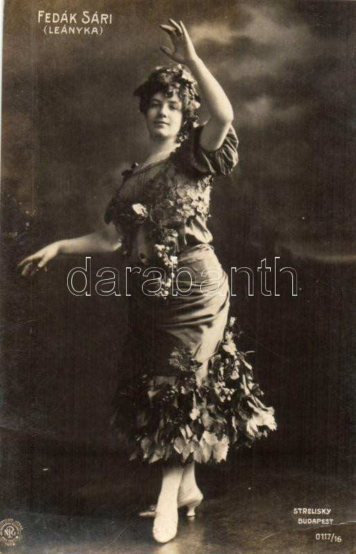 Fedák Sári; 'Leányka', Strelisky No. 0117/16 (EK) https://www.darabanth.com/hu/253-Gyorsarveres/253.0/Motivum-kepeslapok/Szinesz~25/Fedak-Sari-Leanyka-Strelisky-No-011716-EK~II1223305