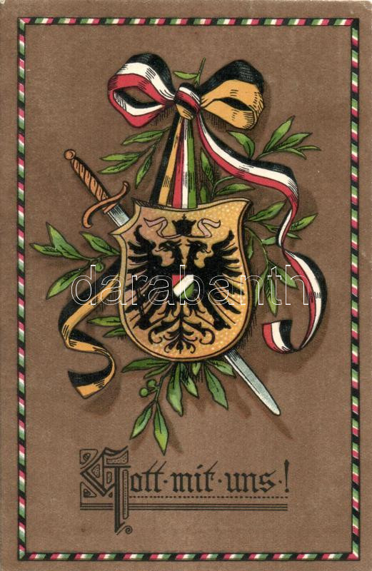 K.u.K. coat of arms, flags, sword, litho (EK) https://www.darabanth.com/hu/253-Gyorsarveres/253.0/Motivum-kepeslapok/Zaszlo-Cimer~39/KuK-coat-of-arms-flags-sword-litho-EK~II1213282