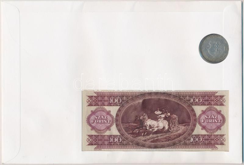 1994. "Kossuth Lajos halálának 100. évfordulója" érmés és bankjegyes pecsételt boríték 1947. 5Ft Ag érmével és 1992. 100Ft-os bankjeggyel illetve egyenként 19Ft névértékű négyestömbű bélyeggel a PHILSWISS kiadásában, német leírással T:2-,I