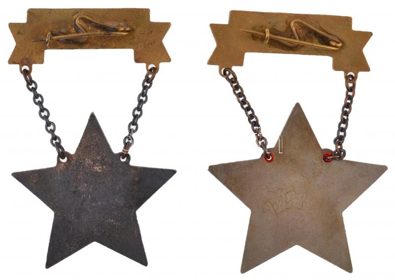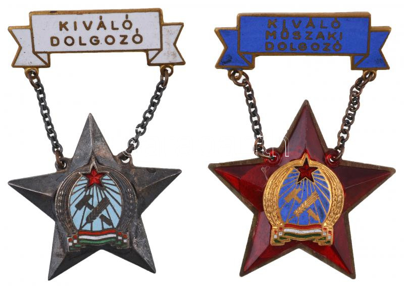 Leírás: ~1950. "Kiváló műszaki dolgozó" zománcozott fém kitüntetés + "Kiváló dolgozű" zománcozott fém kitüntetés T:2