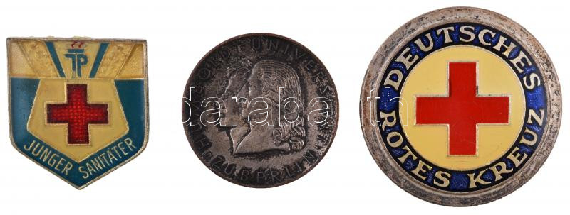 Leírás: Németország 3db-os jelvény tétel: "Német Vörös Kereszt" (32,5mm) + "Fiatal felcser" (22,5x25mm) + "Humboldt Egyetem Berlin" (25mm) T:2