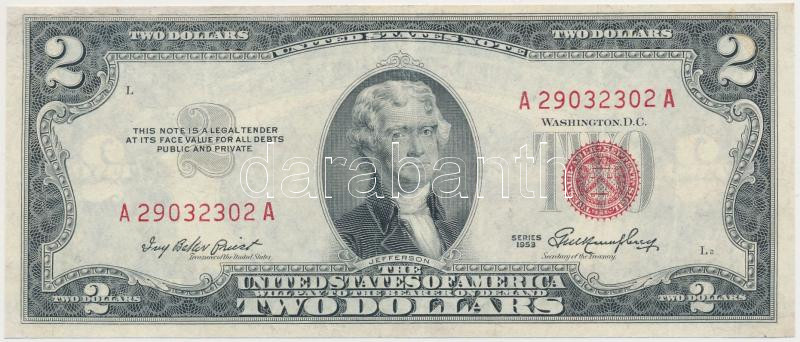 Leírás: Amerikai Egyesült Államok 1953. 2$ "A" piros pecséttel T:restaurált