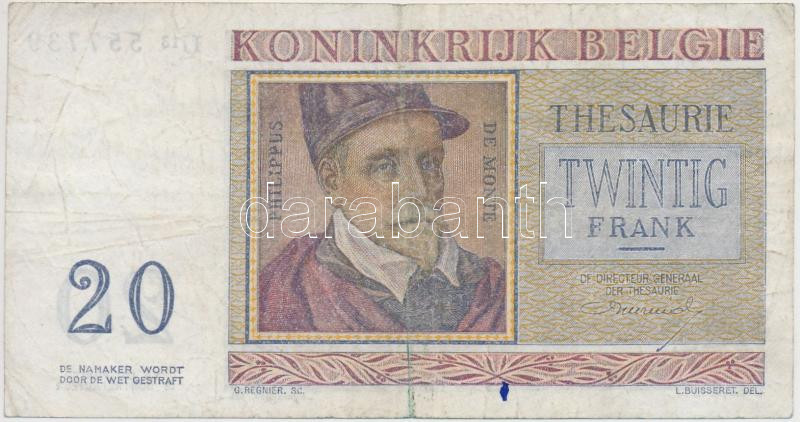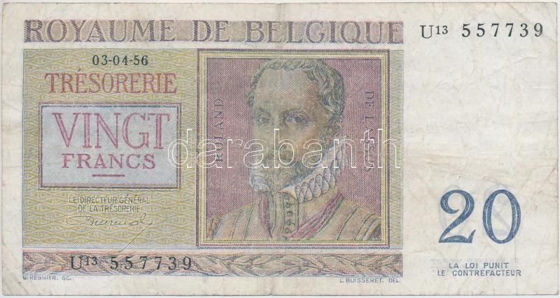 Belgium 1956. 20 Francs C:F,VG https://www.darabanth.com/hu/253-Gyorsarveres/253.0/Numizmatika/Kulfoldi-bankjegyek~200011/Belgium-1956-20Fr-TIII-III---Belgium-1956-20-Francs-CF-VG~II1224024