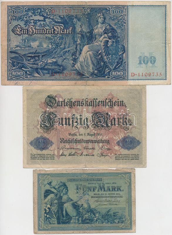 German Empire 1904. 5 Mark + 1906. 50 Mark + 1908. 50 Mark + 1909. 100 Mark + 1914. 50 Mark + 1915. 20 Mark + 1918. 20 Mark C:F,VG